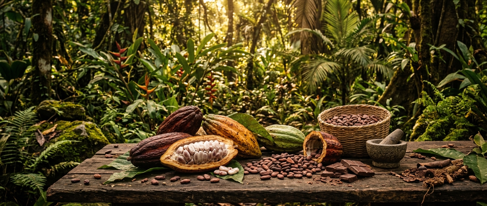Theobroma cacao, nombre científico del árbol del cacao, significa "alimento de los dioses", recordando su valor sagrado desde la antigüedad. — Carlos Linneo